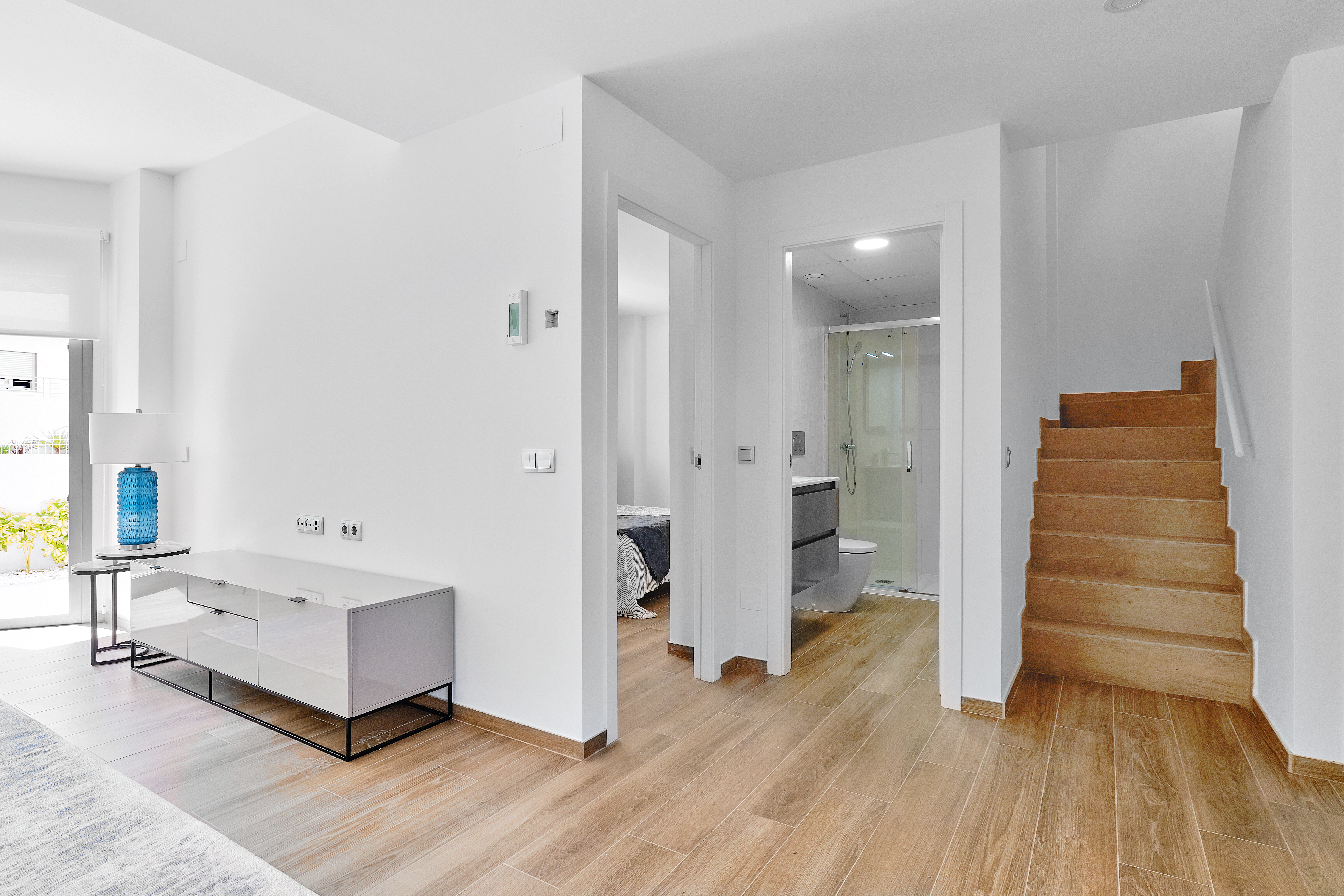 Moderno bungalow en planta baja con dos terrazas y jardín. Dispone de 2 dormitorios, 2 baños y salón-comedor con cocina americana. El complejo residencial está ubicado en una excelente ubicación, a 800 metros de la Playa de los Naufragos y Cala Ferris. Existe una amplia oferta de servicios y actividades de ocio alrededor
