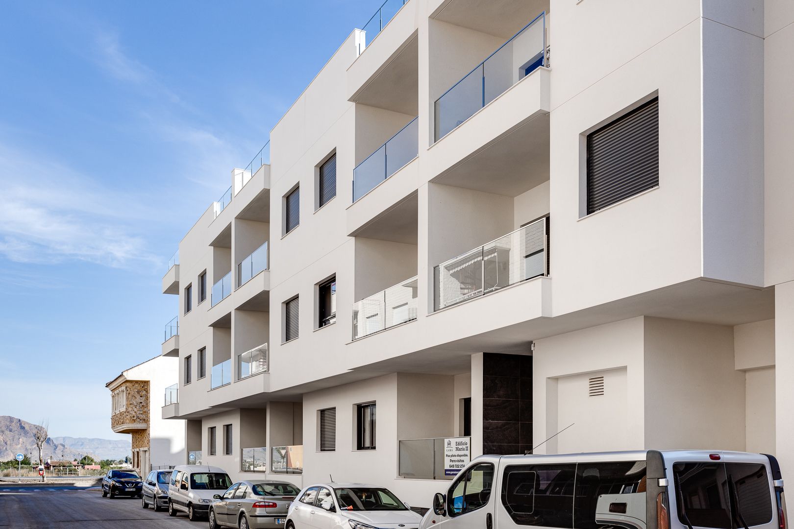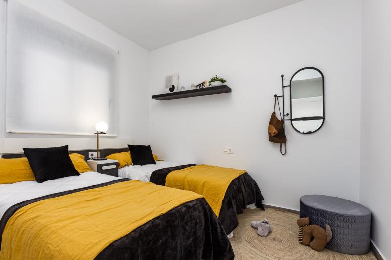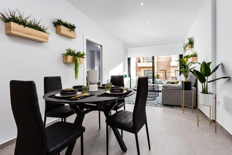 Amplio apartamento dispone de 3 dormitorios, 2 baños, salón - comedor y cocina abierta. Tiene su propio solárium de 30 m2 con vistas a la montaña. En el edificio hay un garaje subterráneo y cada apartamento tiene su plaza de parking incluida en el precio.
