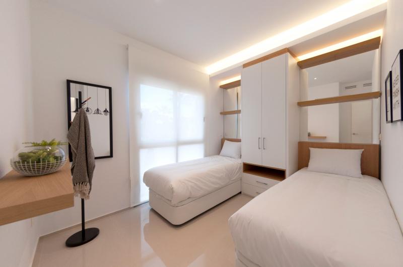 Each block has 8 properties, 4 on each floor. The ground floors have their own large garden and the other 4 have their own solarium with barbecue and storage. Also, each block has a lift that leads directly to the solarium.