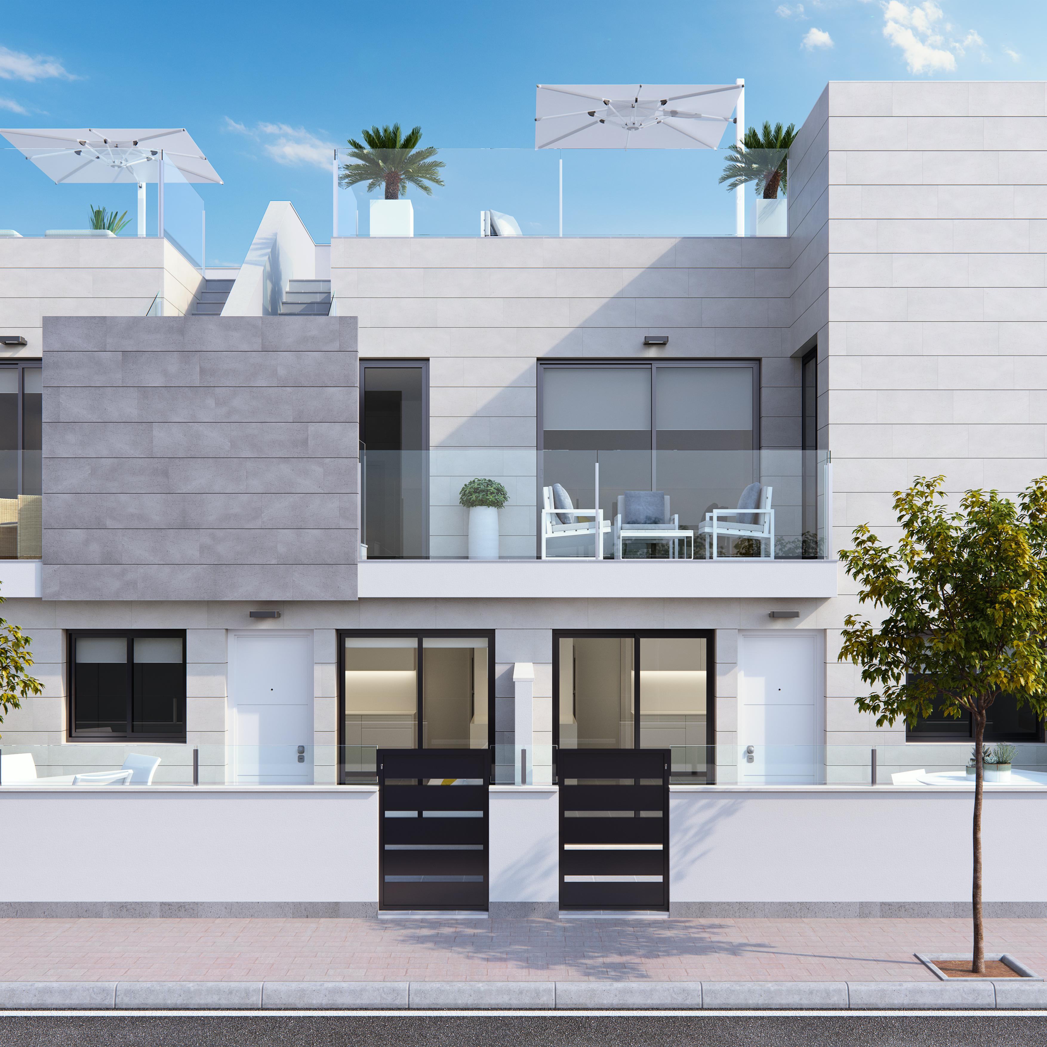 Its modern style and high quality materials, perfectly combined with expert craftsmanship and architecture is designed to take full advantage of the magnificent climate in this fabulous region. The houses have open spaces and terraces / solariums that will make you feel the magic of the Mediterranean, the sun and the sea breeze.