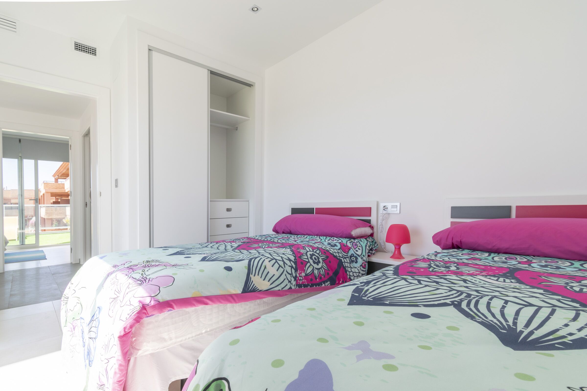 New villa in the quiet town of Los Alcazares. 3 bedrooms, 2 bathrooms, spacious living room, kitchen with appliances, garden and solarium.