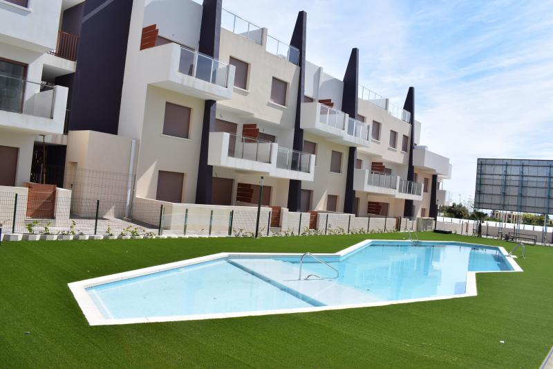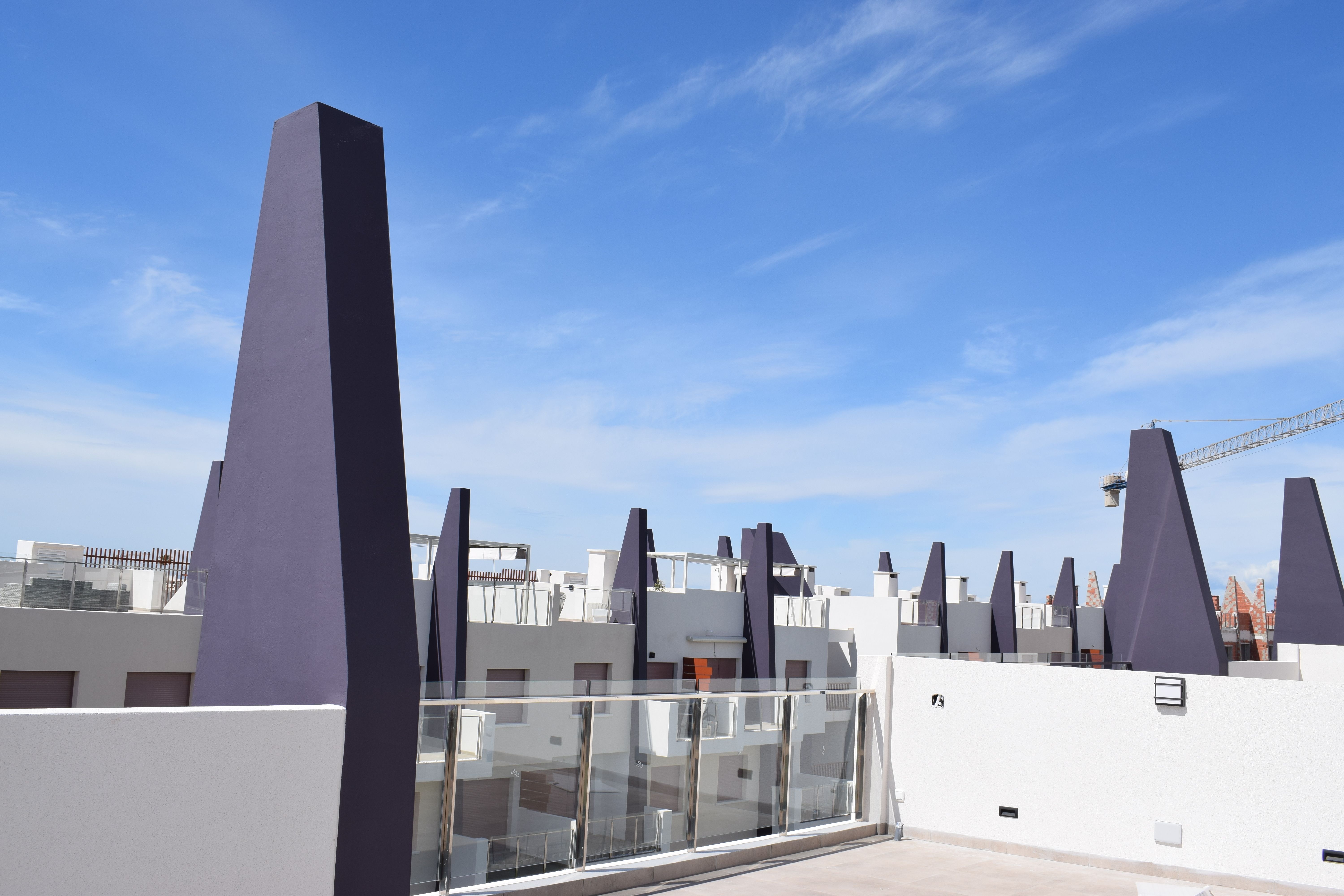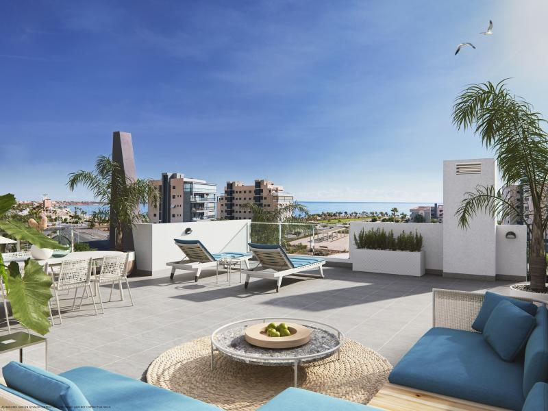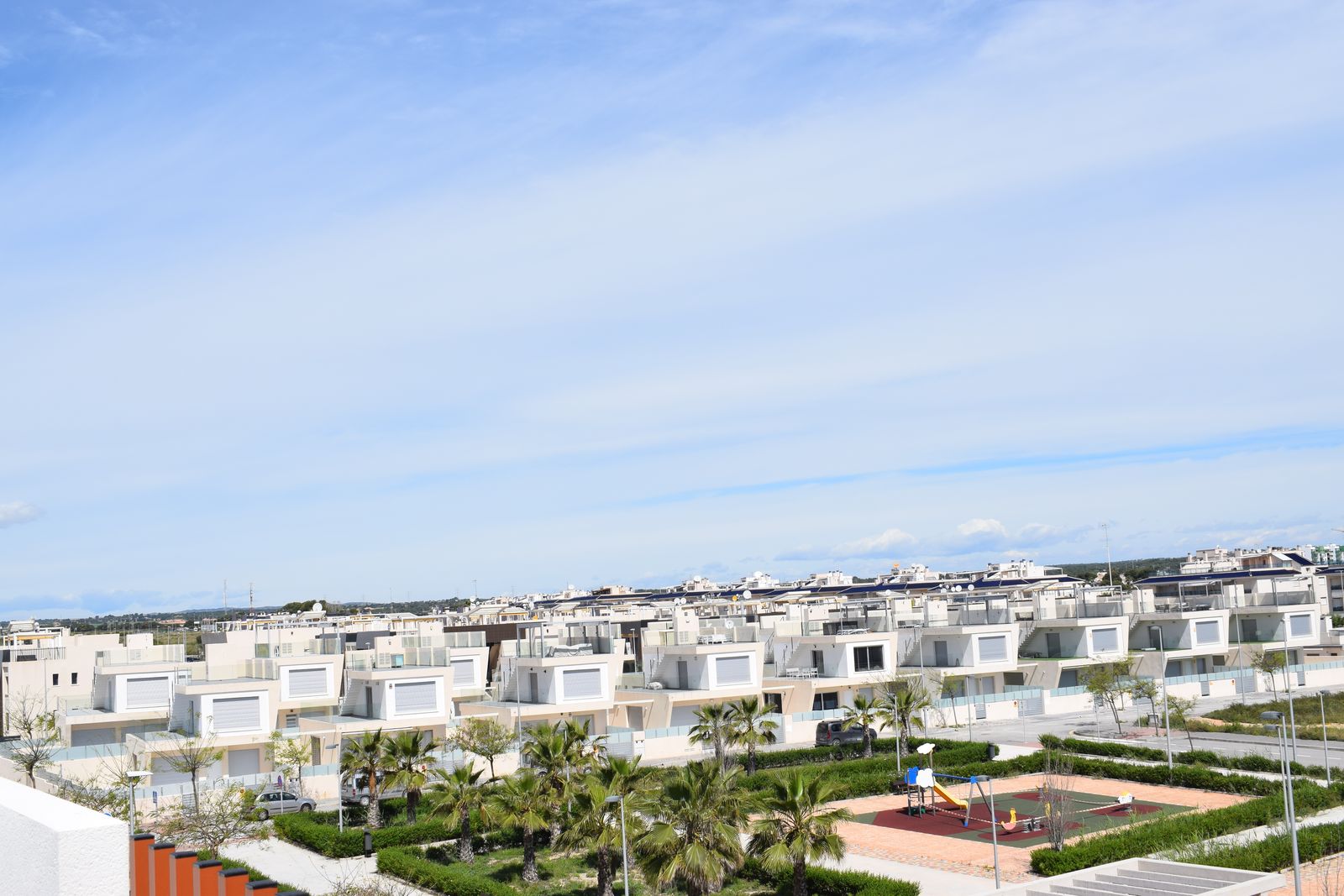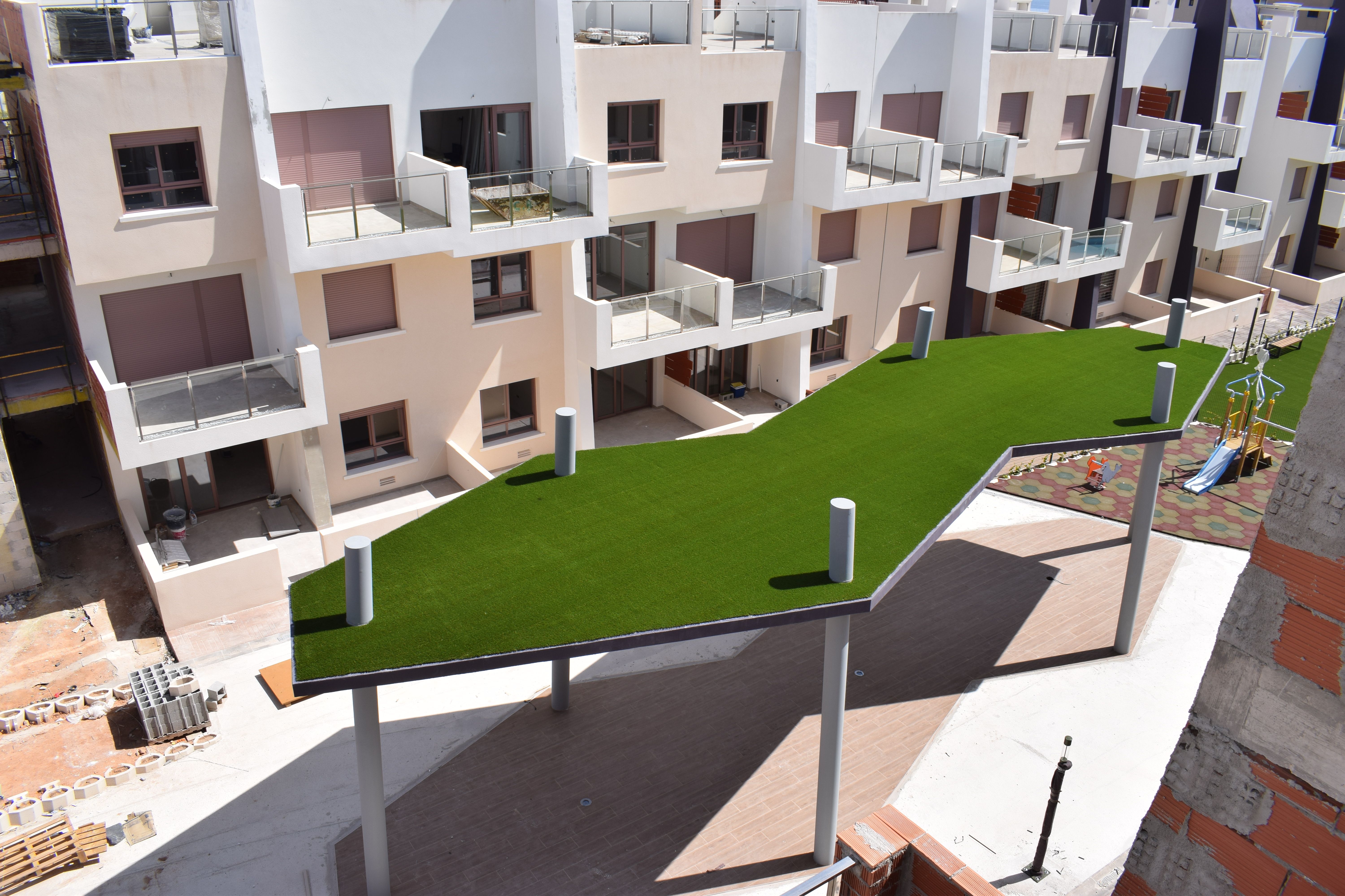 Residential of 104 apartments of 2 and 3 bedrooms with 2 bathrooms. Ground floors with garden and parking, first floor with balcony and terrace and penthouses with private solariums. Houses buildings with high quality materials and innovative design. Residential completed gated with perimetral wall, pedestrian access, wide communal areas with swimming pools, playground and leisure area and circuit healthy machines area for adults. Located in Mil Palmeras site, very near to the beach, surrounded by green areas and close to recreational areas, like golf courses and shopping centers.