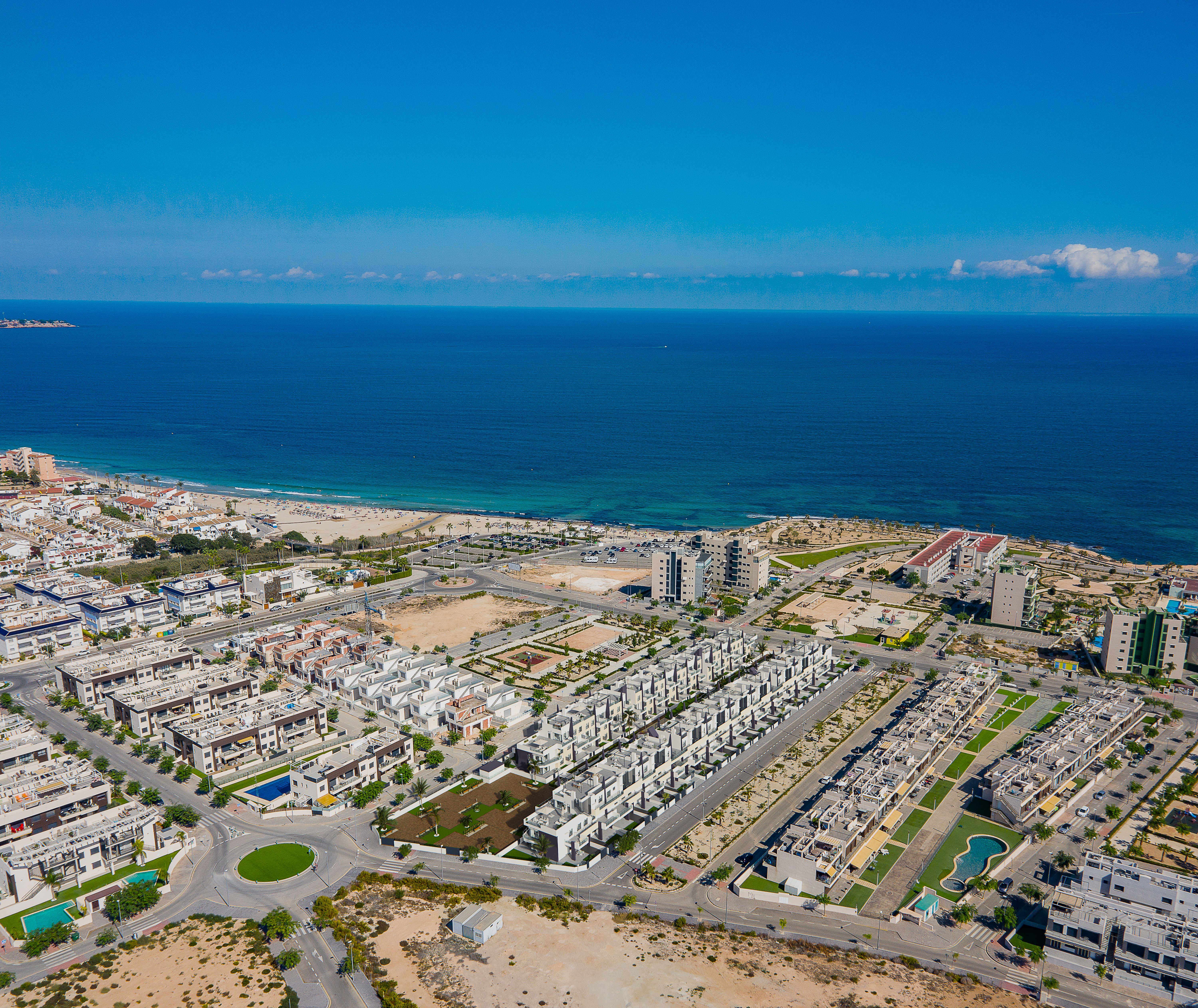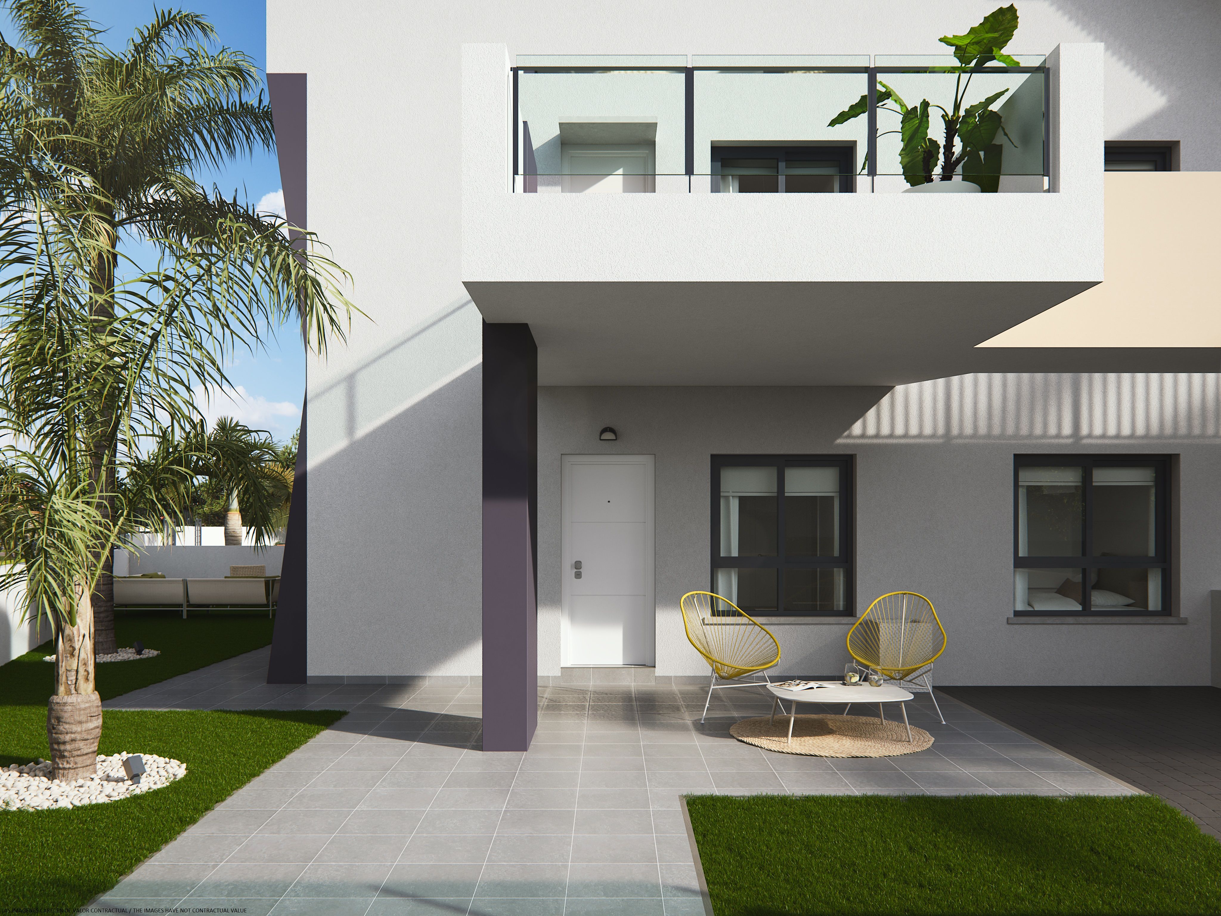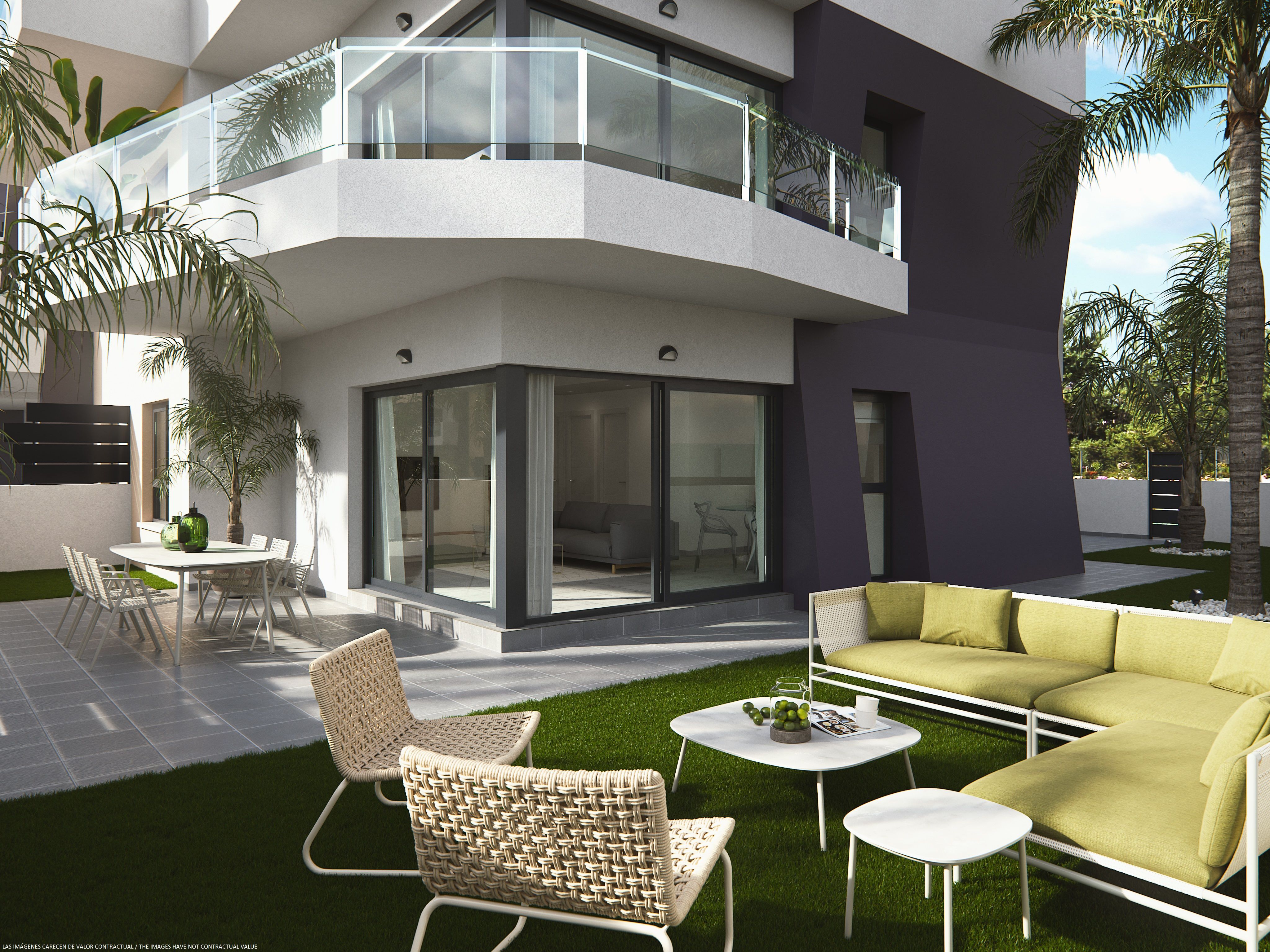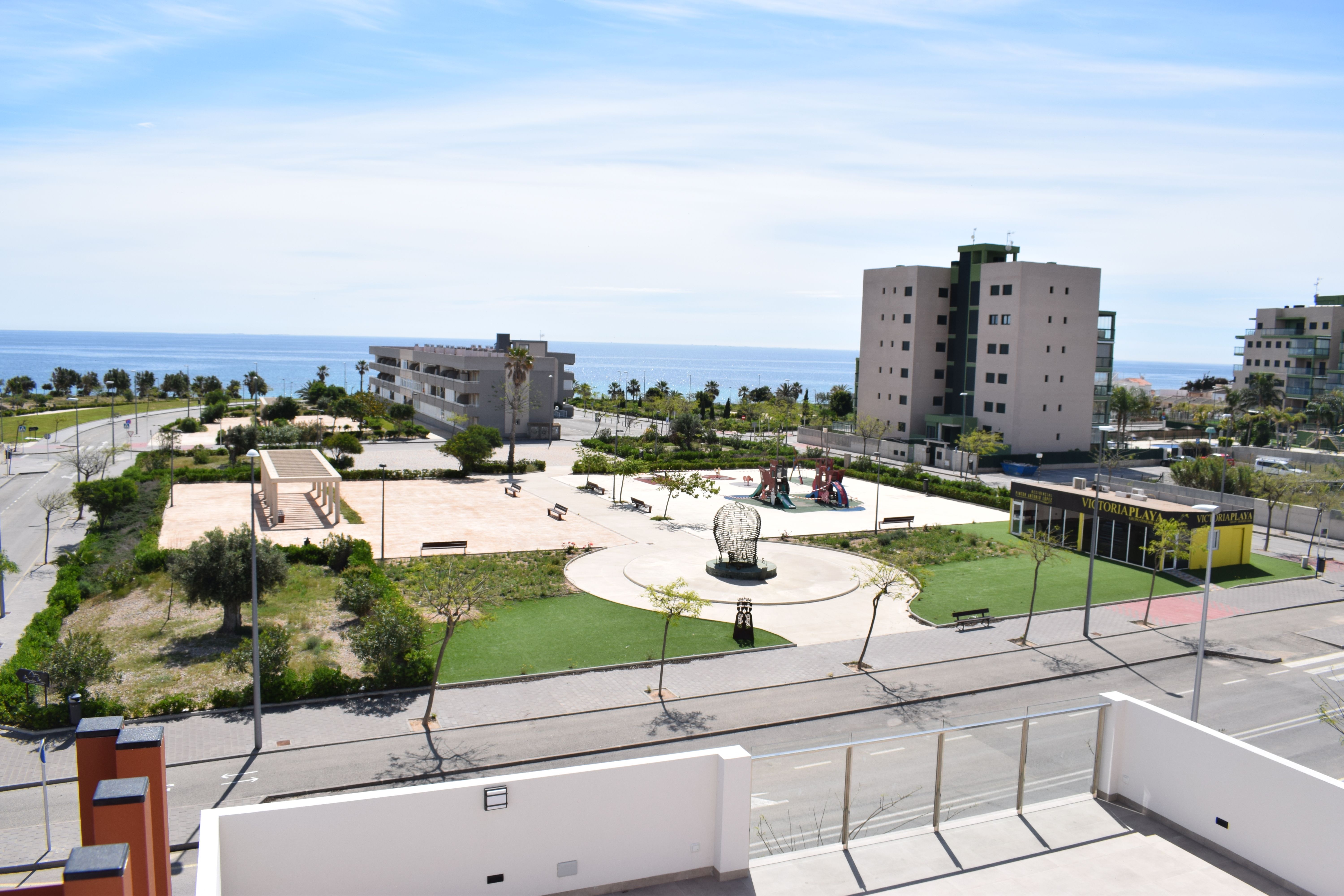 Residential of 104 apartments of 2 and 3 bedrooms with 2 bathrooms. Ground floors with garden and parking, first floor with balcony and terrace and penthouses with private solariums. Houses buildings with high quality materials and innovative design. Residential completed gated with perimetral wall, pedestrian access, wide communal areas with swimming pools, playground and leisure area and circuit healthy machines area for adults. Located in Mil Palmeras site, very near to the beach, surrounded by green areas and close to recreational areas, like golf courses and shopping centers.