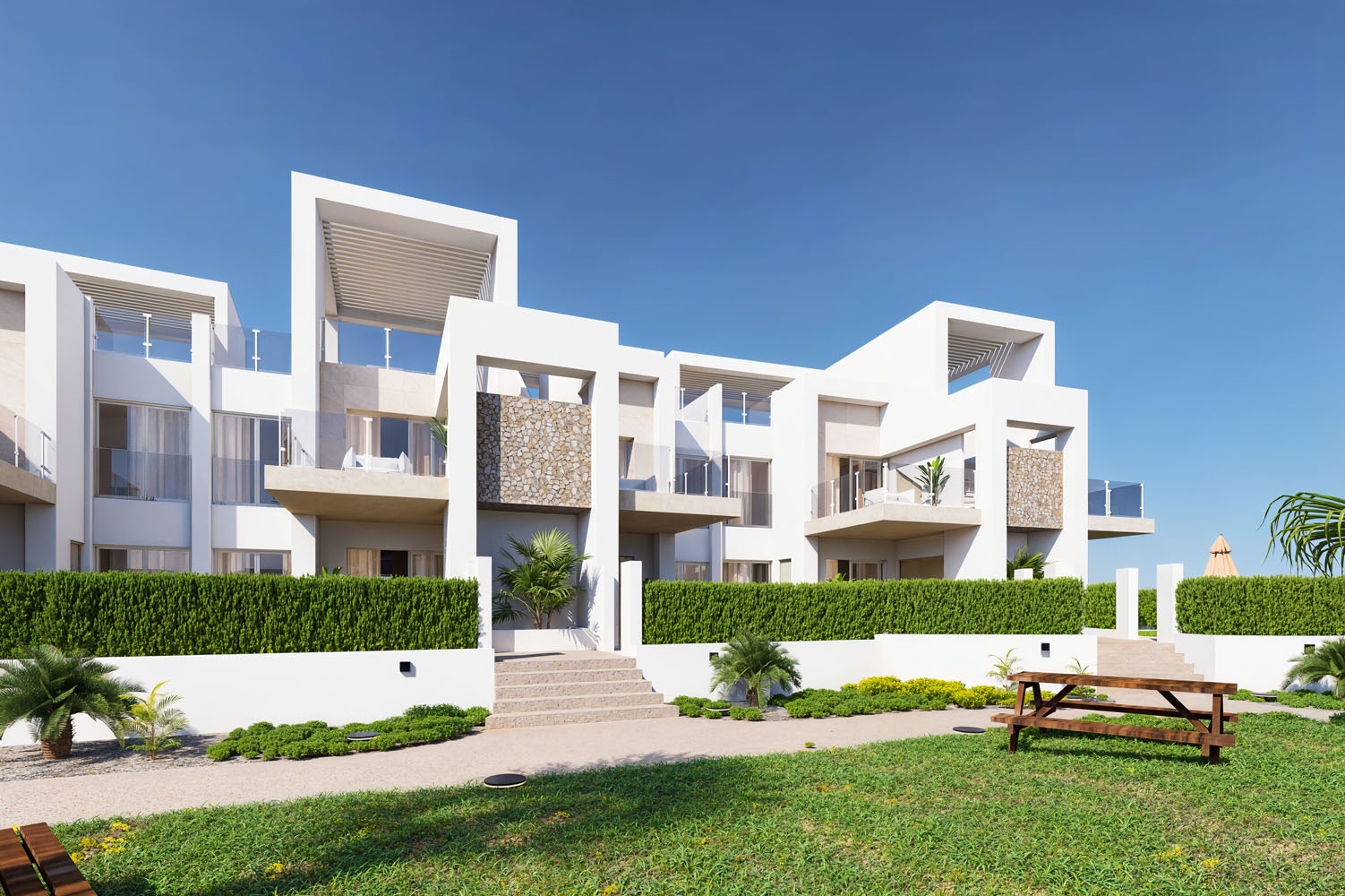 We present to you the Lo Marabu residence, the newest residential gem of the Ciudad Quesada (Rojales) AREA. This exclusive complex consists of modern semi-detached houses designed with bungalows with a terrace and garden on the ground floor and a penthouse with a terrace and solarium with Jacuzzi and a summer kitchen with barbecue area on the upper floor. The residence with green recreation areas and swimming pools offers you maximum comfort and an unsurpassed quality of life. An ideal place for those who seek quality of life, tranquility and access to first-class services. Strategically located in a consolidated and highly sought-after area, this complex offers access to the entire urban infrastructure while maintaining a natural and comfortable environment. A choice of 2 or 3 bedrooms